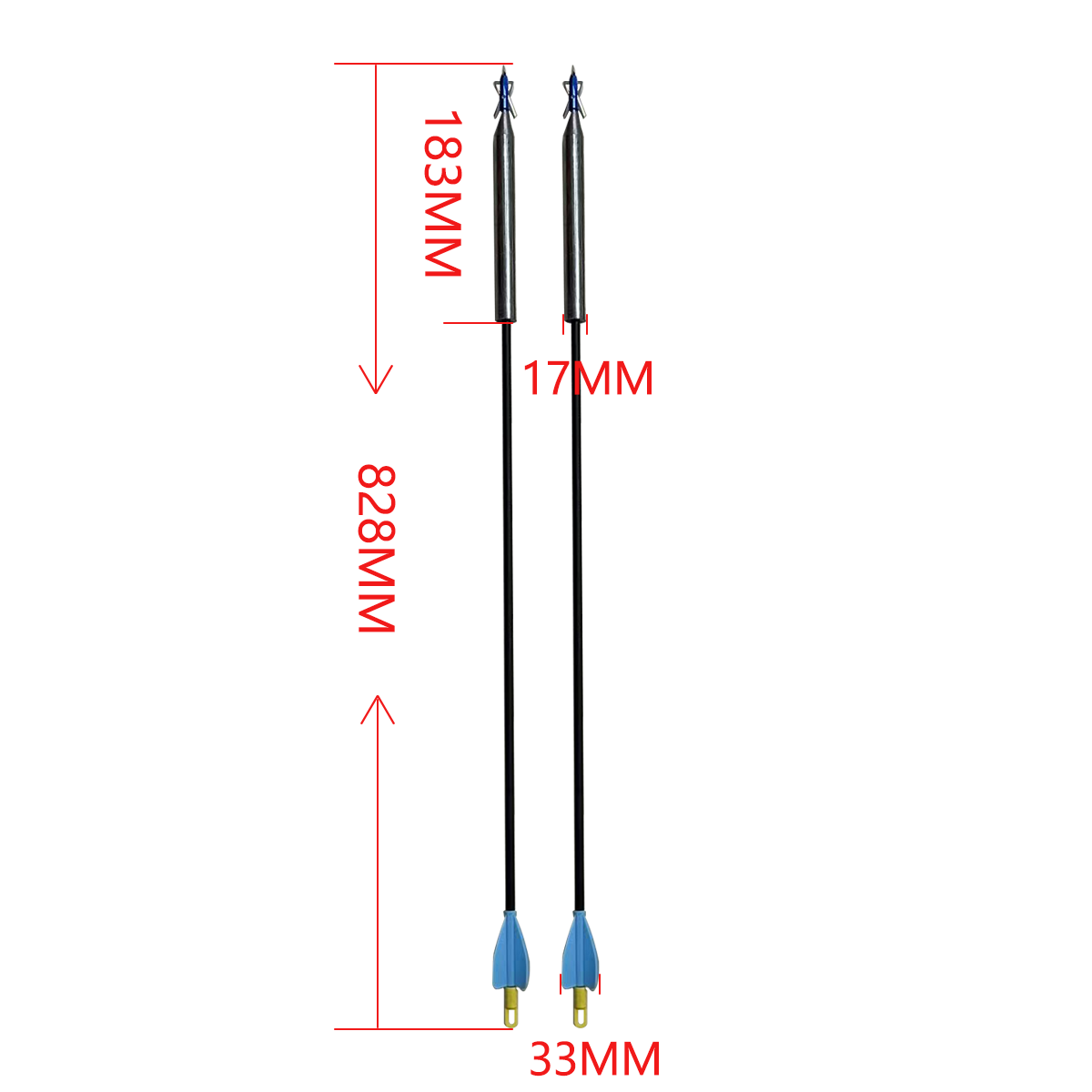 Dart: diameter 17mm, length 183mm, weight approximately 300g